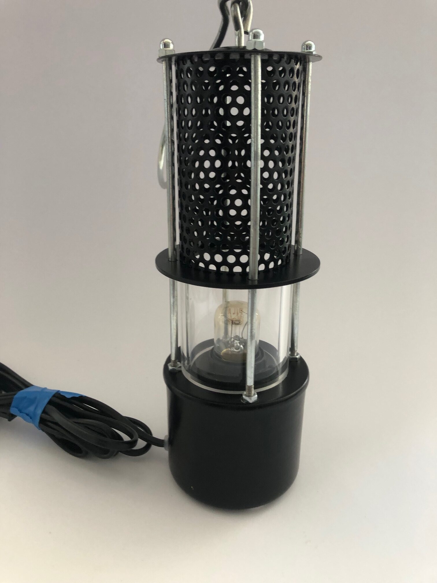 Uniakatowa lampa, stylizowana na górniczą.